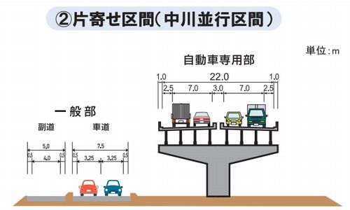 自動車専用部と一般部が併設される構造で、一般部は2025(R7)年6月に松伏町田島の県道越谷野田線バイパスまでが開通しています。
