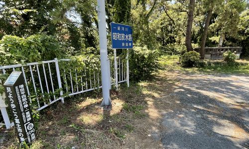 旧・東海道と昭和放水路の交差部には、幕末に排水路の工事に尽力した増田平四郎の像が建っています。放水路の際は木々が大きく育ち、人工の水路とは思えない姿になっていました。