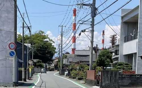 今でも市内とその周辺には多くの製紙工場が操業し、背の高い煙突が富士市の産業の勢いを示しています。