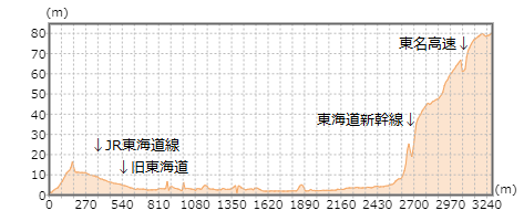 [ 原 原駅付近断面図 (高さ15倍 海岸ー愛鷹山) ]