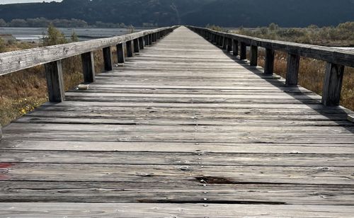 板敷の橋面は、板が腐食し穴が開いてるところが応急的に合板で補修してあります。