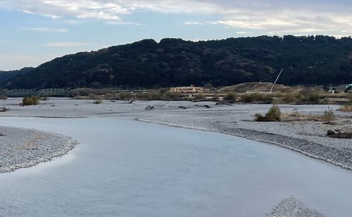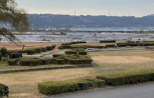 川には堤防がなかったようで、どこまも河原が広がっています。