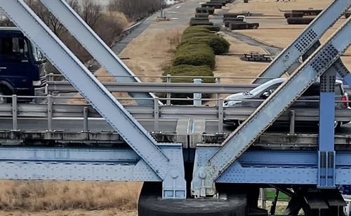 歩道から見える下流側の天竜川橋は、戦前に造られた90歳の橋でところどころに老朽化が忍び寄っています。