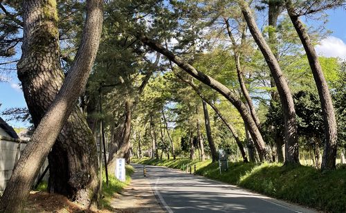 松の木の太さはまちまちで、素直にほぼ真っすぐに伸びた松、道路の上空を横断している松、江戸時代から残っていたと思われる直径1mほどの松など、生え方もいろいろです。
