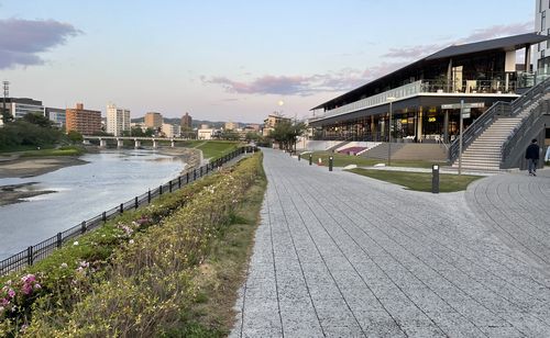 市街の主要施設を周遊する動線に乙川が組み込まれ、堤防上の道路は川側に歩道を設け、川岸も歩道状に整備するほか護岸を階段状にして座れるようにしています。