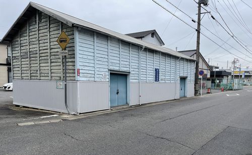 旧・東海道を知立宿に向けて進み、名鉄三河線の踏切を渡り少し行くと右手に「知立水防倉庫」と書かれた建物があります。