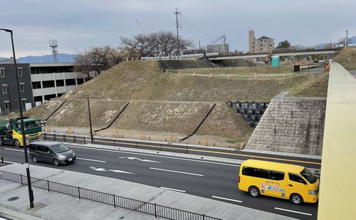城といっても敵からの攻撃に備えるものではなく、将軍家の宿泊施設として造られた建物だったそうです。現在も本丸を囲む堀は残っていますが、将軍が泊まっていた建物は残っておらず本丸は県立高校のグラウンドとして独占的に使われています。