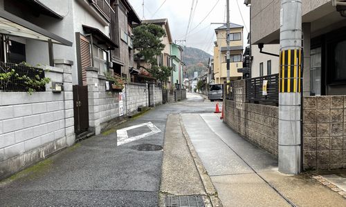 住宅地の中の旧・東海道は単なる区画街路の一つになり、峠付近も狭い道沿いに住宅が建ち並び、車一台が通るのが精一杯の幅しかありません。