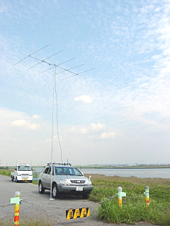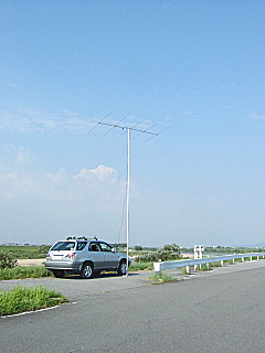 | 市街地にある小高い八つ面山の展望台駐車場でやろう としたのですが、すでに満車で断念。 矢作川の小川橋の近くの左岸堤防に変更。 川の風が気持ちよかったです。 アンテナ方向が1エリア→ |