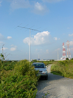 | 3年前にやった場所と同じところです。 ただし堤防の上の道が草で狭くなっておりなんとか車を 寄せて運用できるスペースを確保しました。 写真に見える高圧鉄塔がいたるところにあって ノイズが心配でしたがほとんど影響なしでした。 アンテナ方向が3エリアです。 |
