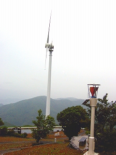 | ここにはでかい風力発電設備が1基あり、すぐ近く でANTをあげたので、羽の音がぶんぶんと聞こえ ます。 羽は南方向を向いていました。 ANTをたてた写真の車の向こうに白い物が横た わっていますが、羽の1個の実物大のものを展示 してありました。 なんと重さが4トンもありトラック1台ををまわして いることになるなあ・・・すげー! |