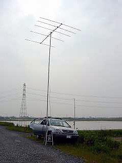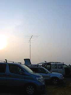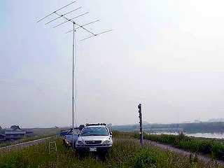 | 揖斐川の堤防で5エレをあげました。 すぐ横が名神高速道路です。 発電機の音も気にすることもなく、のびのび出来 るのですが呼ばれない。 30分交代でオペをやるいつものパターンでしたが、 蒸し暑くて無線機の前にいるのは一人だけ、 後は談笑で楽しんでいました。 それにしても呼ばれない、当局は2局だけという お粗末さでした。 JQ3NSU局がCWで頑張ってくれたのが救いでした。 |
