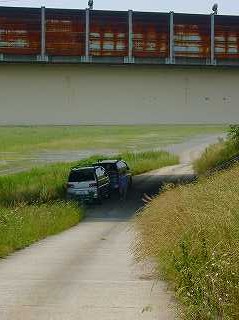 名神高速の橋げたの下でOP以外は涼んでいま した。 揖斐川の風が涼しすぎて半袖では寒いときがあ りました。 のんびりと談笑して1日楽しめました。 |