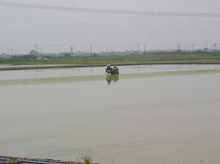 アンテナをあげている横では遅めの田植え仕事を やられていました。 聞くところによるとこの場所は干拓したところで、 実験田として国の補助でやっているとか・・・。 農家の方も大変ですね。 |