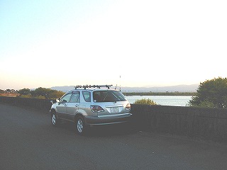 | 夕方の渋滞につかまりかなり時間ロスして移動 ポイントへ。 濃尾大橋の北約1kmの木曽川堤防で運用。 堤防の高さがあり夕日を見ながらモービル ホイップで3エリアと簡単に出来ました。 残り2ポイント頑張るぞ! |
