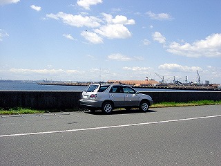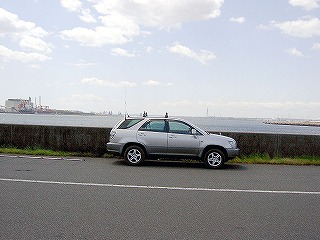 | 半田市へは一度衣浦海底トンネルを通ってみ ようと思い西尾市から直行しました。 料金は250円、妥当な線かな? 防波堤のところで3エリアからの信号をワッチ。 弱いのでアンテナをあげることになりました。 写真方向が3エリア→ |