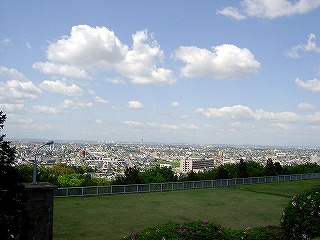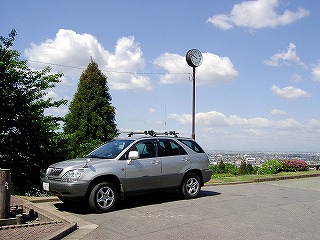 | 市街地にある小高い八つ面山の展望台駐車場 の時計の真下で運用しました。 標高は70m弱と低いですがかなり飛びそうな気 がします。 3エリアとはモービルホイップで十分でした。 |