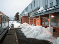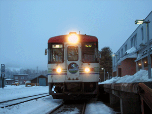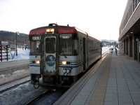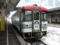| 快速「銀河」にて置戸へと向かう。後部運転台付近にいたが、車内の暖房と雪の照り返しでけっこう暑かった。 | |||
