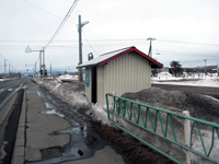 | 道路側からみた待合室 | 待合室にはこんな看板が | ホーム | ホームより訓子府方向を見る |