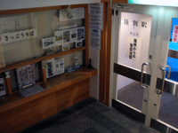 | 次は秘境駅で有名な川上で下車 | とりあえず駅舎に入る | 出入り口扉 | こちらは入り口 |