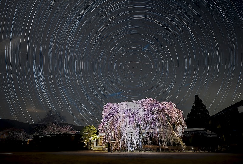 杵原学校の枝垂れと星流れ−−長野県飯田市で