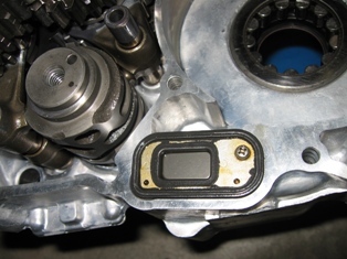 フロート室内のチェックバルブです。左が07モデルです。穴の開き方が違います。ガソリンの供給方法が違うらしいです。 |