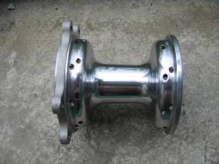 次はフロントです。スポークが1種類なので迷わず組みます。(リアは一度間違えました。)フロントはスペアを持っていたのでリムをばらしてハブだけ使います。中古なので鏡面仕上げにしてみました。一度やってみたかったのです。しかし一度で十分です。手間がかかりすぎです。ところがリムを組んでみると純正ハブがまるで社外品のハブのようです。リアもやれば良かったと少々思いました・・・。 |