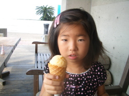 恵士郎のソフトクリームを少し頂きました。すっごく甘いです。ソフトクリームなので甘いのは当たり前ですが、オレンジの味が強いですね。ソフトクリームとは合わないような気がします。
