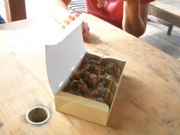 タコ丼にタコ天丼などタコメニューがあります。おなかがいっぱいで食べることができませんでした。たこ焼きなら食べれるだろうと買ったのですが、たこ焼きはどこで買ってもそんなに味に違いはありませんよね。他と違うのは、地ダコを使っているので、ものすごく歯ごたえがあるってところですね。