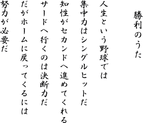 草野球の目指すもの 勝ちにこだわる理由 ひとつの心 スーパーサブ 感謝の気持ち チームのために 守備力こそチームの力なり 1点の遠さ リベンジするは我にあり
