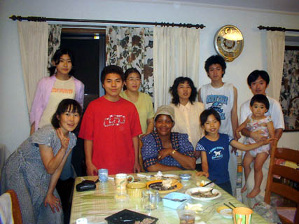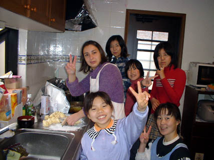 愛知学院大学日本語別科の留学生のホームビジットを受入れました。謝さん、李さんはじめ7人の学生といっしょに包子:肉まんをつくって食べたりおしゃべり