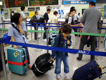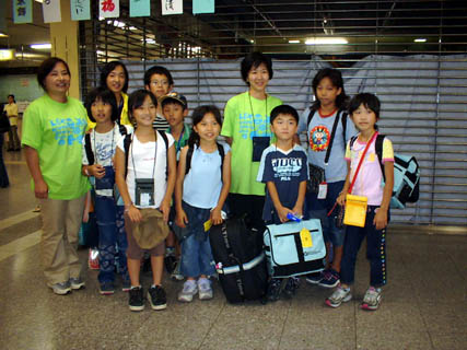 夏の青少年交流:ロシアに出発しました。中部地方からは小学生7人、高校生1人、グループフェロウ2人が名古屋空港から新潟空港に飛び新潟からウラジオス