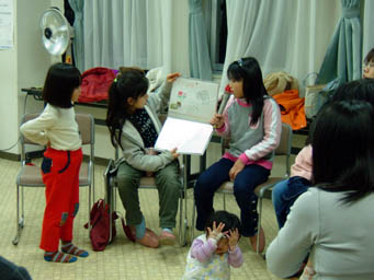 青少年国内ホームステイ中のしゅほちゃんが ケイKファミリーに参加しました。小学生のおねえさんの話には興味津々のfちゃんです。名古屋学院大学留学生