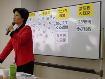 愛・地球博も間近の瀬戸市民のみなさんが集まって、講師の話に聞き入っていました。言語観の転換に気づいた人も多いことでしょう。