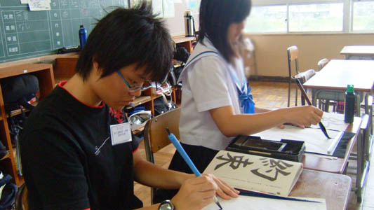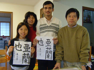 CKCの研修生:ARANYAさんがメンバー宅にホームステイしました。漢字で名前を書いてあげました。はじめてのお習字に挑戦!