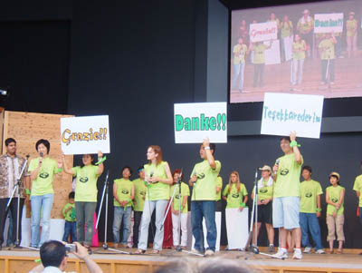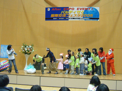 『愛・地球博』長久手愛知県館「あいち・おまつり広場」にてヒッポファミリークラブのステージがありました。万博を100倍楽しむことばのパスポートを手