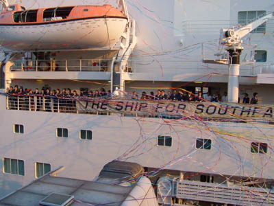 日本丸という大型客船で東南アジア5カ国をホームステイしながら公式訪問するプログラムです。国際交流フェスタに参加、回転寿司に挑戦、スーパー銭湯を初体験、おまけに季節はずれの