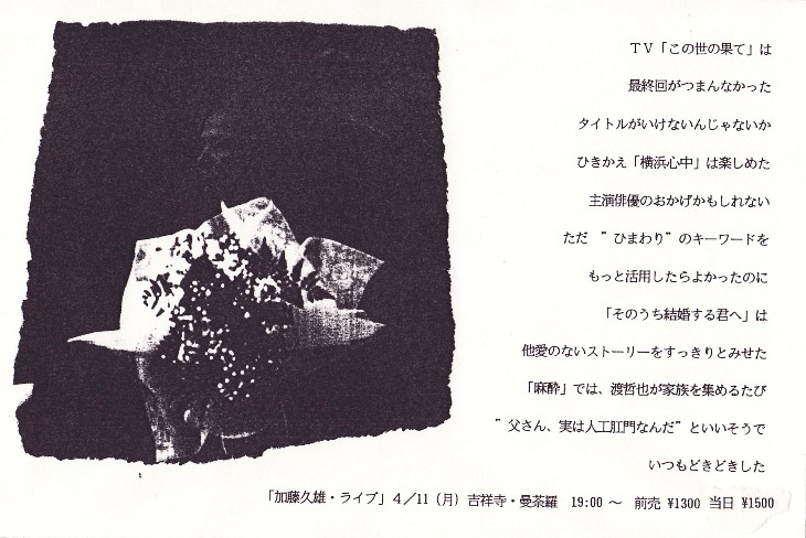 吉祥寺・曼荼羅 1. 93.6.20. 2. 君は幻想 3. ささくれたかたち 4. 痛まない心 5. 地下街を通って 6. Sunday |