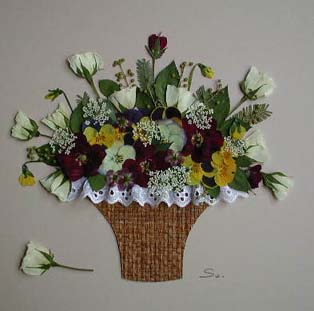 白バラ、紅バラ、ビオラ、レースフラワーを