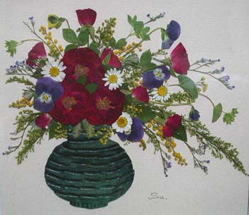 花瓶は紙粘土で作ったものです。