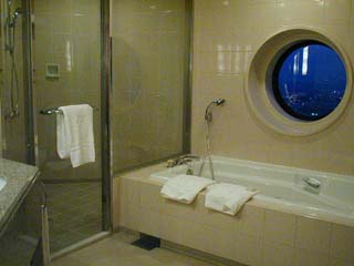 今回泊まった部屋は、デラックスルームで、バスルームには丸窓があり