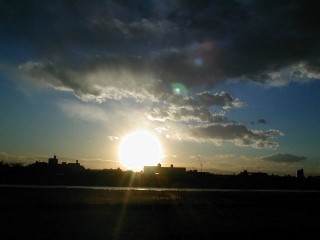 夕日が沈む多摩川です。空の色と雲の変化に見とれていました。