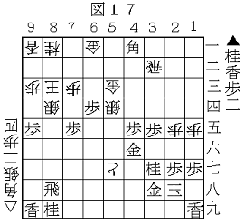 まずは松原の将棋を見ていただこう(松原が先手)。図17は△4一角と打ったところ。直前に銀損しており、冷静に見ると苦しい局面だ。