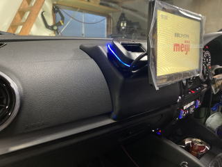純正モニターの映り?明るさが足りず、見難いので別モニターを付けられないか? アウディーA3 ダッシュ上には設置場所がポン置きモニターくらいしか置けない感じです。。。 最近はヘッドレストモニター専用モデルになっているモデルが多くなってきています。 ダッシュにはそのまま置けません。。。 ![]() 3Dプリンターで作りました!と言いたいところですが、木とパテで制作しました。。。 固定にビスを使っていません。。。ダッシュを傷めないで欲しいという要望でしたので、極力面を合わせて、両面で固定です。プライマーをダッシュに塗れば強力に接着出来ますが、外した時の質感が変わってしまうので、使わずに面積で接地力を高めました。。。 シルバーの パネルは部品として出るようなので、穴を開けても構わないとの事でしたが、プライマー塗って強力接着しました。。。 ![]() ヘッドレストに通すブラケットが、基板を外すことが出来ないので、ステー加工して固定しました。。。 ブルーイルミが思いのほか、良い感じですね。。。 音声は純正のVIDEO入力に入れています。。。 HDMI音声分離機で映像はHDMIでモニターに入れ、音声は純正オーディオ鳴らす。。。 楽しさ倍増です。。。 音声信号をSPDIFでDSPに直接入れれば、更に高音質になるかと。。。 楽しみ方色々です。。。 |