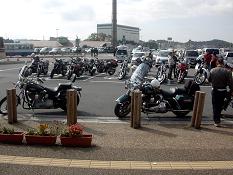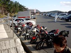 数多くの(バイク+ライダー)がいます。何とか駐車スペースを探し自分達の