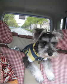| 今日はどこに行くでしゅか? ここはとっても前が見れて好き! |