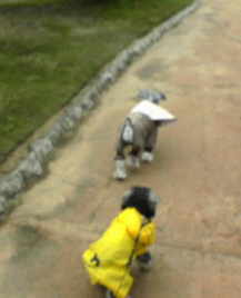 しかし生憎の雨。雨の中初めてレインコートを着て高砂海浜公園にお散歩