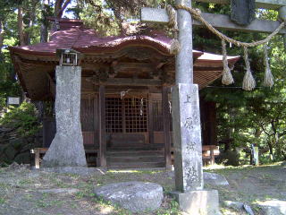 <左:上原城跡、この祠の右手前には清水が沸いていた。この祠の奥を登ると物見岩があり主郭(上の写真)へと続く>