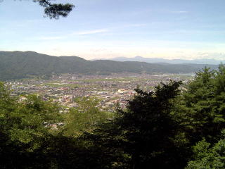 <上原城跡から遠く諏訪湖、小坂観音院を望む>