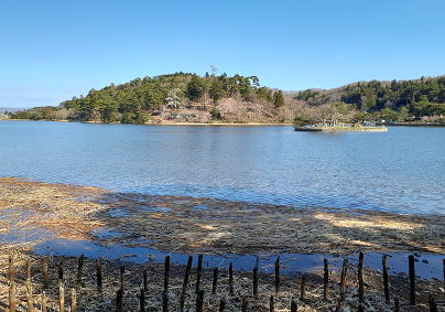 桜咲く南湖のかなた山の雪-